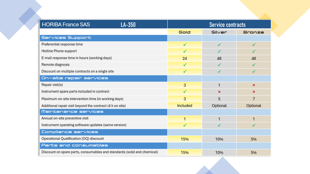 *HORIBA France contract. Local contracts may vary for each country, please contact your local representative.